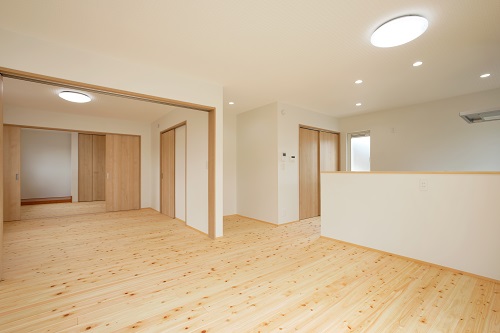 2LDKなので間仕切を建具仕切ることで開ければ広々とした空間になるように工夫しています。